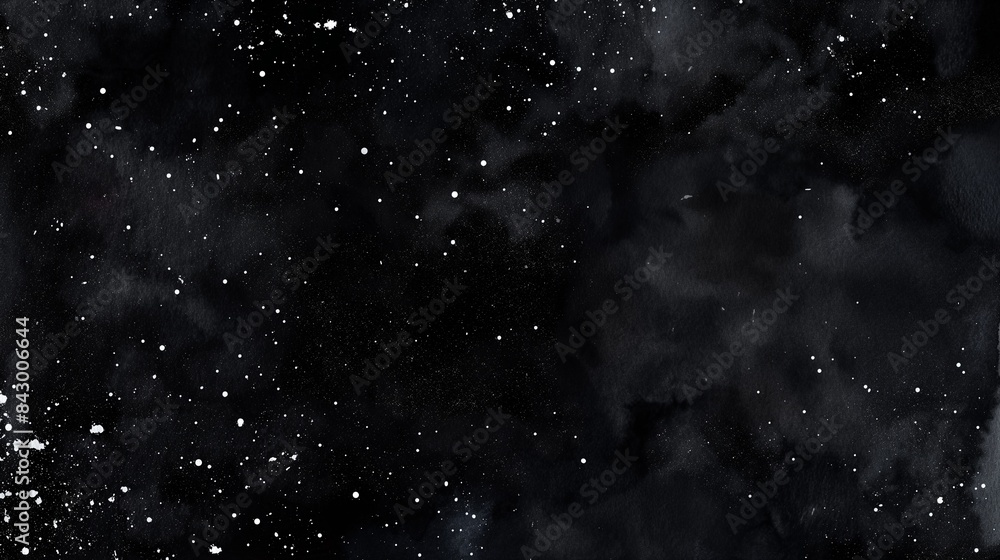 The watermark will not be included on Wall mural.: A black watercolor background with an overlay of fine, white speckles, suggesting a distant starfiel