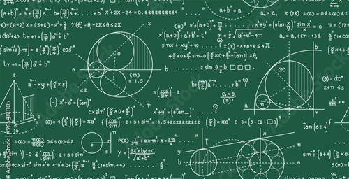 Wall mural a blackboard with mathematical formulas and seamless curved lines. - Wall murals Wall mural a blackboard with mathematical formulas and seamless curved lines. - Wall murals