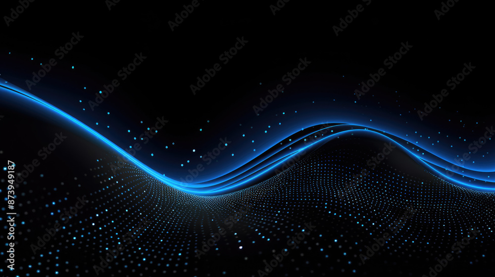 Wall mural : A blue and black background with dot patterns - abstract wave image - , generative ai