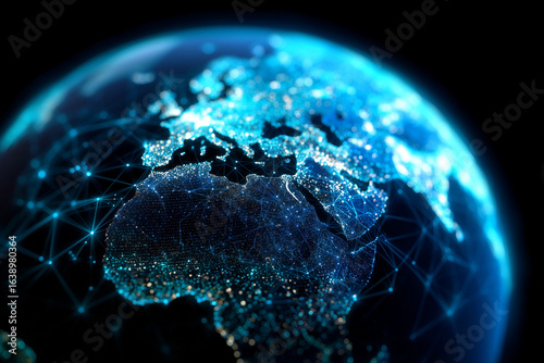 The watermark will not be included on Wall mural.: A blue and white globe with a network of lines connecting it