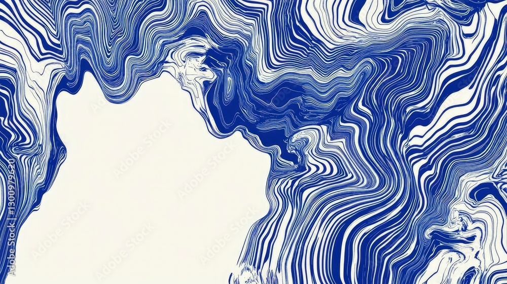The watermark will not be included on Wall mural.: A blue and white striped pattern, with thick lines of varying density, creates an abstract backgroun