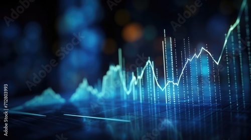 Wall mural a blue background featuring a futuristic digital growth graph chart serves as a symbol of the rapid  - Wall murals Wall mural a blue background featuring a futuristic digital growth graph chart serves as a symbol of the rapid - Wall murals