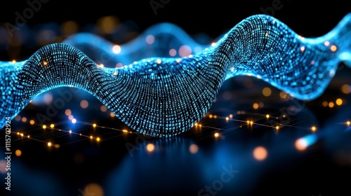The watermark will not be included on Wall mural.: A blue binary code stream flowing continuously on a computer screen representing data transmission a