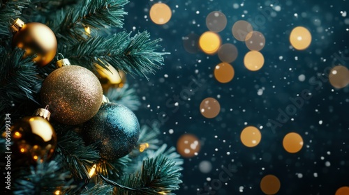 Wall mural a blue christmas background with snowflakes and bokeh lights, creating a festive and wintery atmosph - Wall murals Wall mural a blue christmas background with snowflakes and bokeh lights, creating a festive and wintery atmosph - Wall murals
