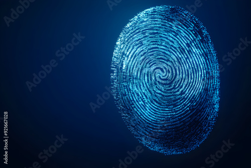 Wall mural : A blue circle with a spiral pattern in the middle - the circle is the shape of a fingerprint