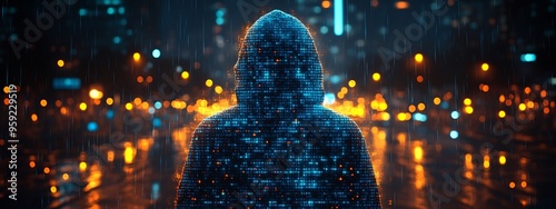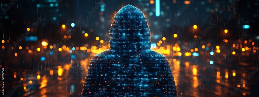 A blue digital hacker with glowing binary code, ai in cybersecurity systems, threat detection algoriWall mural