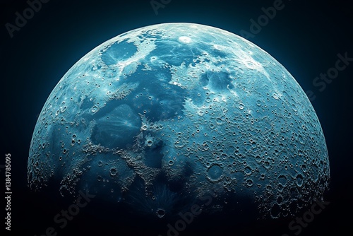 The watermark will not be included on Wall mural.: A blue moon with a dark background - moon's surface with craters, isolated on a solid background -
