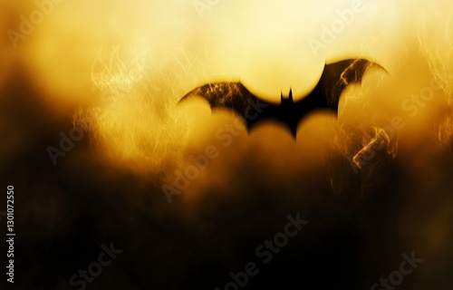 The watermark will not be included on Wall mural.: A blurred yellow and dark brown background with soft, out-of-focus light in the shape of bat wings,