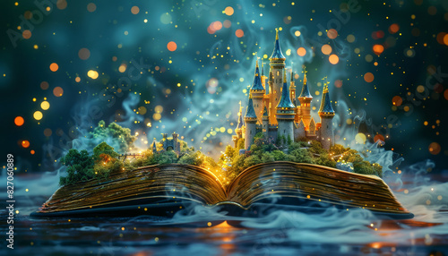 Wall mural a book is open to a page with a castle on it by ai generated image - Wall murals Wall mural a book is open to a page with a castle on it by ai generated image - Wall murals