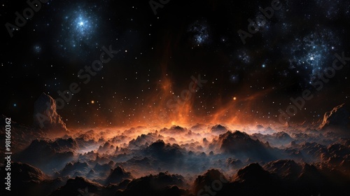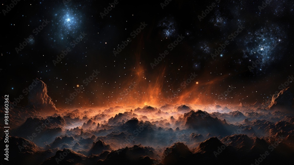 Wall mural a breathtaking view of a distant, alien world. the rugged mountains and swirling clouds create a sen - Wall murals Wall mural a breathtaking view of a distant, alien world. the rugged mountains and swirling clouds create a sen - Wall murals