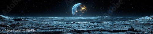 Wall mural a breathtaking view of the moon's surface with earth in the distance creating a vast otherworldly la - Wall murals Wall mural a breathtaking view of the moon's surface with earth in the distance creating a vast otherworldly la - Wall murals