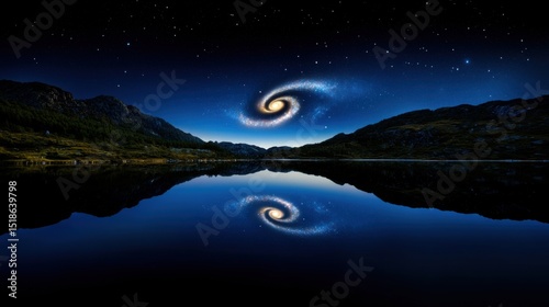Wall mural a breathtaking view showcases a spiral galaxy illuminated against a starry night sky, mirroring perf - Wall murals Wall mural a breathtaking view showcases a spiral galaxy illuminated against a starry night sky, mirroring perf - Wall murals