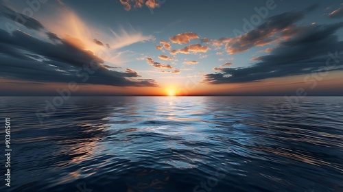 Wall mural a breathtakingly realistic 4k image of a vast ocean with calm waters reflecting a vibrant sunset, sy