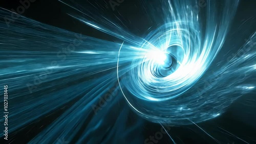 The watermark will not be included on Wall mural.: A bright, blue spiral of light against a dark background