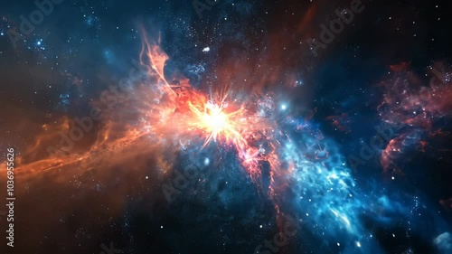 Wall mural a bright, fiery nebula explodes in a dark, starry sky