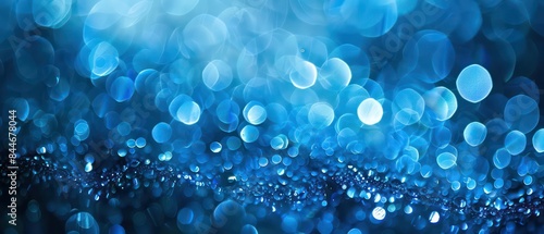 Wall mural a bright blue bokeh background with blurred lights, creating a festive and colorful atmosphere suita