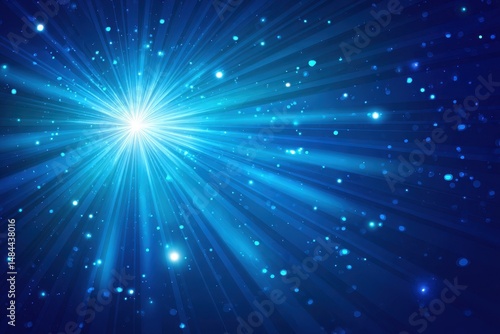Wall mural a bright blue burst of light radiates outward with sparkling particles on a dark blue background, cr