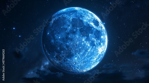 Wall mural a bright blue full moon shining luminously against a deep night sky, surrounded by twinkling stars,