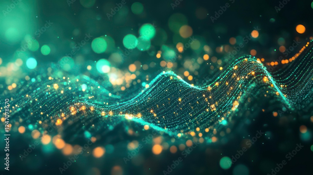 The watermark will not be included on Wall mural.: A bright digital rendering of an ecg pulse displayed on a dark green background -