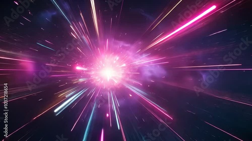 Wall mural : A bright pink and blue light streaks through the cosmos
