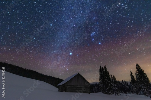 The watermark will not be included on Wall mural.: A bright starry night in the mountains with the milky way in the sky, venus and millions of stars hi