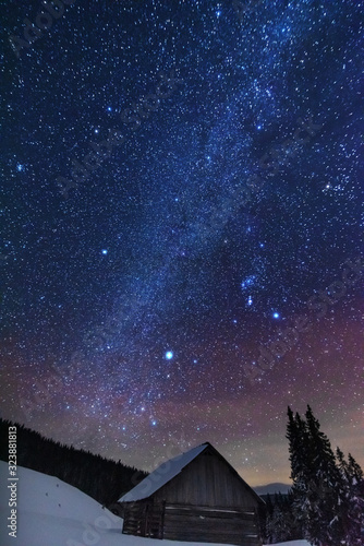 The watermark will not be included on Wall mural.: A bright starry night in the mountains with the milky way in the sky, venus and millions of stars hi