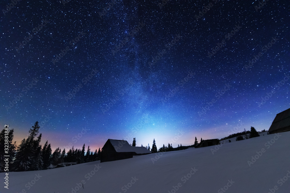 The watermark will not be included on Wall mural.: A bright starry night in the mountains with the milky way in the sky, venus and millions of stars hi