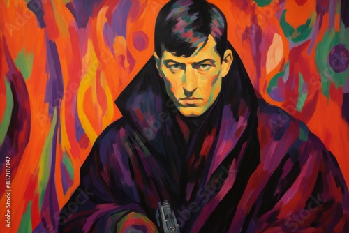 Wall mural a brooding and mysterious assassin, lurking in the shadows and eliminating targets with lethal preci - Wall murals Wall mural a brooding and mysterious assassin, lurking in the shadows and eliminating targets with lethal preci - Wall murals