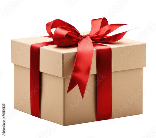 Wall mural a brown box with a red ribbon tied around it. the box is empty and ready to be filled with a gift