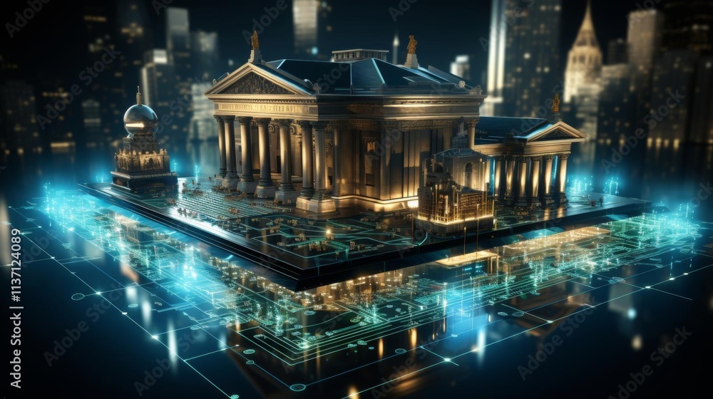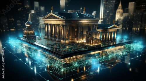 The watermark will not be included on Wall mural.: A building with a dome on top and a large building in the background