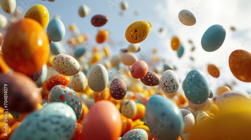 Wall mural a bunch of eggs flying in the air with a lot of them in front of a sky filled with clouds. - Wall murals Wall mural a bunch of eggs flying in the air with a lot of them in front of a sky filled with clouds. - Wall murals