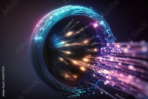 Wall mural a bundle of thin translucent fibers glowing with data signals in vibrant colors. generative ai