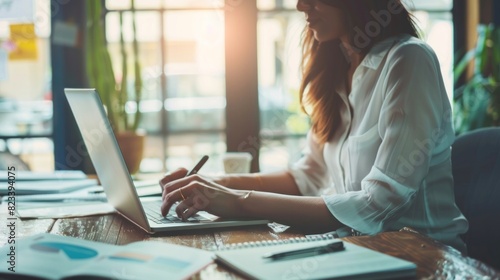 The watermark will not be included on Wall mural.: A businessman using a computer for analysis seo search engine optimization marketing