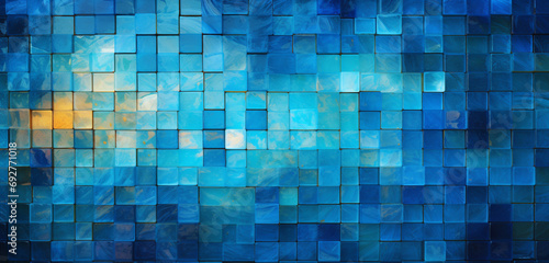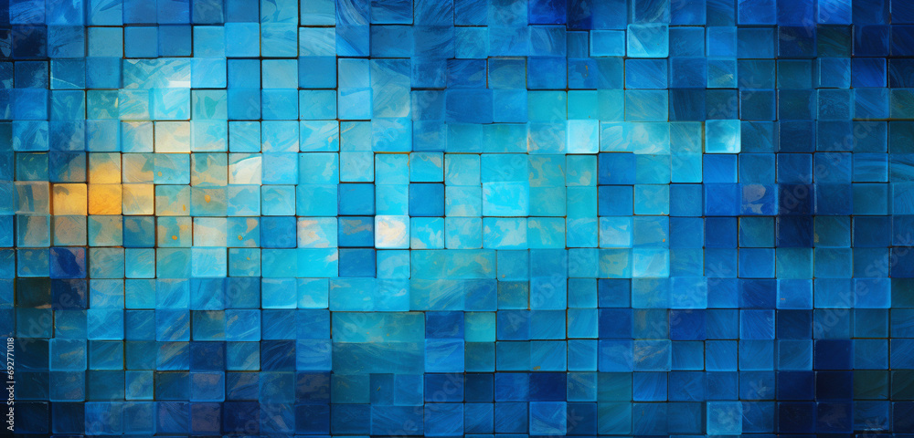 Wall mural a captivating 3d mosaic with intricate color contrasts and dynamic patterns against a deep ocean blu - Wall murals Wall mural a captivating 3d mosaic with intricate color contrasts and dynamic patterns against a deep ocean blu - Wall murals