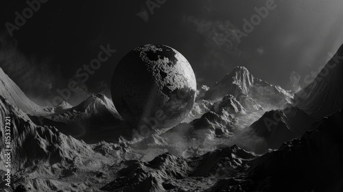 The watermark will not be included on Wall mural.: A captivating 3d rendering showcases an abstract representation of planet earth in black and white f
