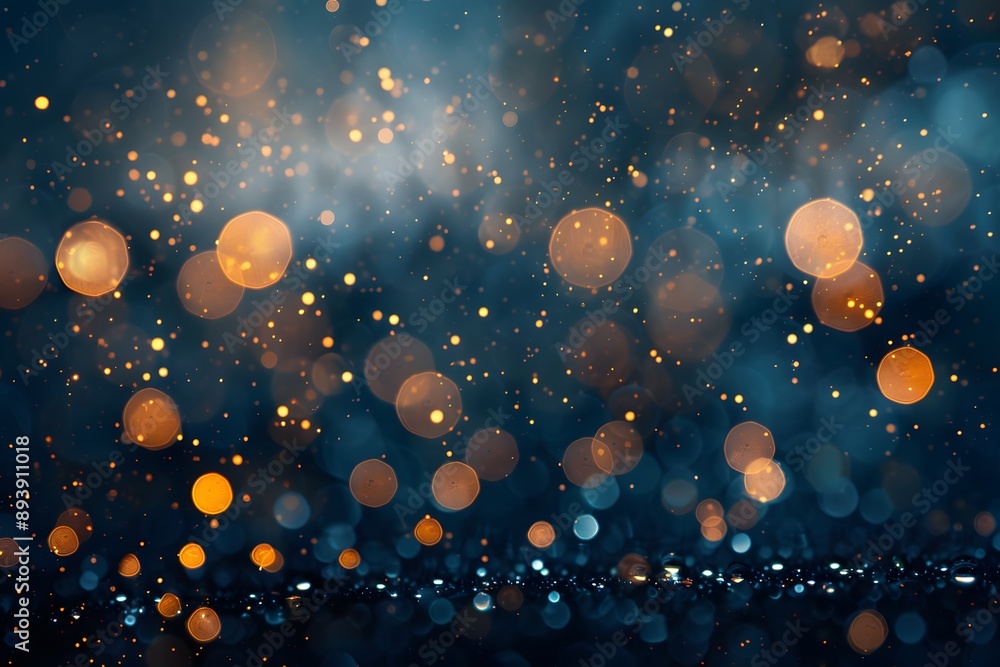 The watermark will not be included on Wall mural.: A captivating abstract background featuring shimmering bokeh lights in soft hues of gold and blue, c