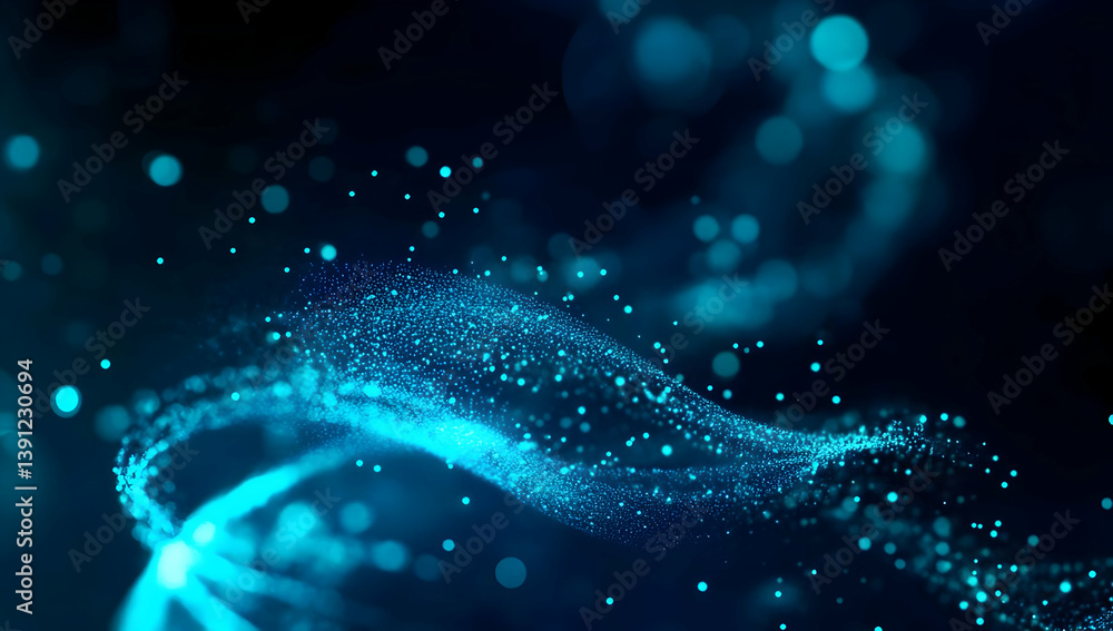 The watermark will not be included on Wall mural.: A captivating abstract image showcasing vibrant blue particles swirling through the darkness, creati