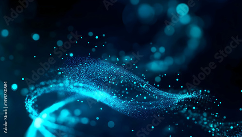 Wall mural a captivating abstract image showcasing vibrant blue particles swirling through the darkness, creati