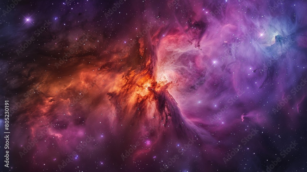 The watermark will not be included on Wall mural.: A captivating high-resolution image depicting a colorful nebula set against a starry background in o