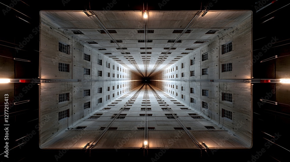 The watermark will not be included on Wall mural.: A captivating symmetrical view showcasing the architectural design and engineering of a deep cylindr