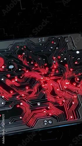 Wall mural a captivating view of a complex electronic circuit design illuminated by striking red lines against