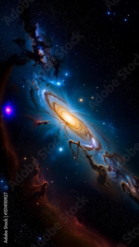 Wall mural a captivating view of a spiral galaxy with vibrant colors and many sparkling stars and nebulae scatt - Wall murals Wall mural a captivating view of a spiral galaxy with vibrant colors and many sparkling stars and nebulae scatt - Wall murals