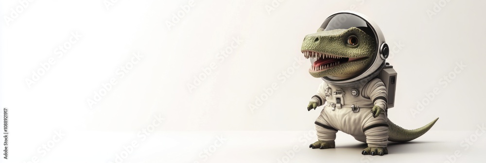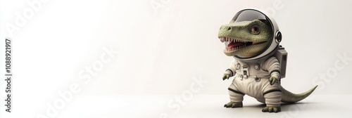 Wall mural : A cartoon dinosaur in an astronaut suit, ready for space exploration -