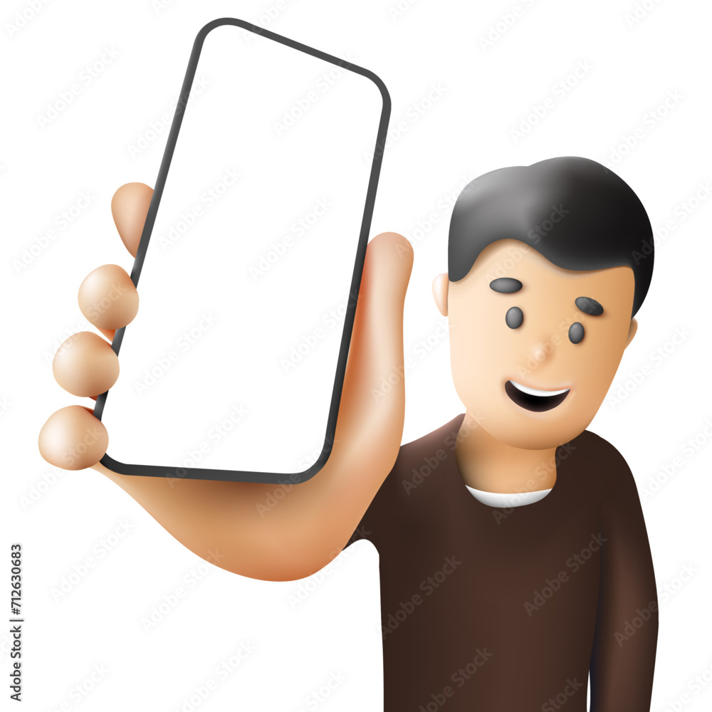 The watermark will not be included on Wall mural.: A cartoon-style person displaying a phone with an empty screen - vector illustration as a template f