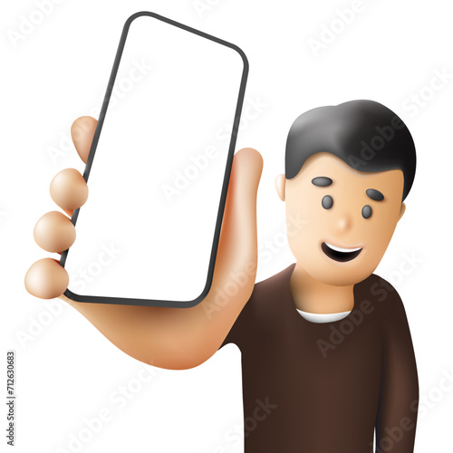 Wall mural a cartoon-style person displaying a phone with an empty screen - vector illustration as a template f