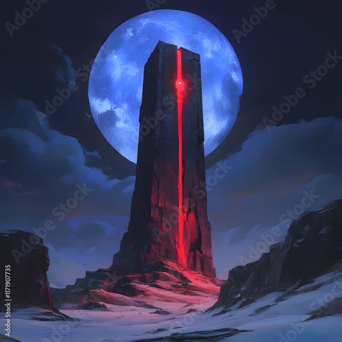 Wall mural a castle with a red cross on it and a moon in the background. generative ai - Wall murals Wall mural a castle with a red cross on it and a moon in the background. generative ai - Wall murals