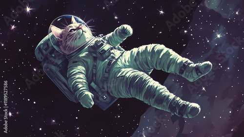 Wall mural a cat astronaut floating in space surrounded by twinkling stars. starbound. illustration - Wall murals Wall mural a cat astronaut floating in space surrounded by twinkling stars. starbound. illustration - Wall murals