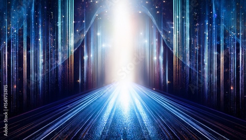 The watermark will not be included on Wall mural.: A celestial gateway an enigmatic passage through shimmering cosmic curtains and a reflective path le