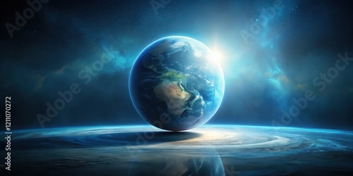 Wall mural : A celestial orb earthlike planet suspended above a glowing nebula in the vast expanse of space