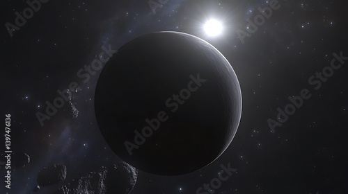 The watermark will not be included on Wall mural.: A celestial planet exists with a brilliant star in space